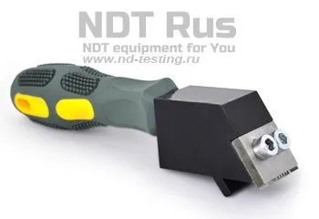 Прибор соответствует следующим стандартам: Возможно 2 варианта постаки: АН-1 (с 3 лезвиями) и АН-1М (с 1 лезвием на выбор) НАЗНАЧЕНИЕ: Определение силы сцепления (адгезии) лакокрасочных покрытий толщиной до 200 мкм на изогнутых и плоских поверхностях. Для этого используется метод надрезов (как решетчатых так и параллельных) в соответствии с ГОСТ 15140, ISO 2409, ISO 16276-2, ASTM В 3359. При использовании метода решетчатых и параллельных надрезов исследуемое покрытие прорезается специальным многолезвийным инструментом насквозь до подложки с шагом между лезвиями 1, 2 и 3 мм. В итоге получаются решетка или полосы с одинаковым шагом. Затем на очищенном месте среза оценивается визуальным методом величина адгезии. Адгезиметр-нож АН-1 представляет из себя рукоятку из пластика с закрепленной на ней металлической головкой. На головке установлен многолезвийный нож изготовленный из инструментальной стали. У каждого ножа имеется два опорных и шесть основных лезвия. При необходимости, для затупившихся лезвий разрешена заточка. ОСОБЕННОСТИ: