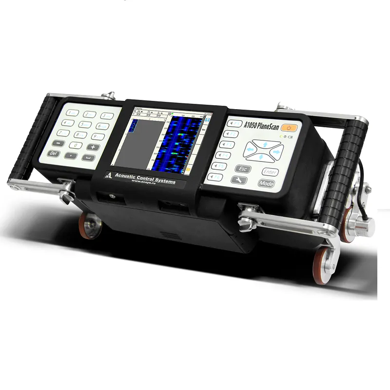 - Сканер-топограф А1050 PlaneScan предназначен для обнаружения дефектов обшивки самолета, методом поверхностного прозвучивания с использованием ультразвуковых преобразователей с катящимся сухим точечным контактом.