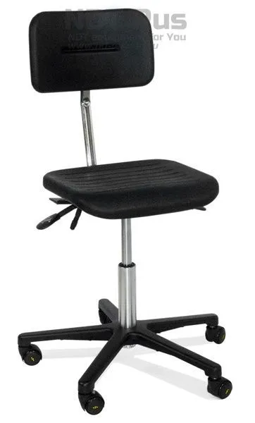 - Дополнительно может комплектоваться колесной базой, антистатическими подлокотниками, опорным кольцом для ног.