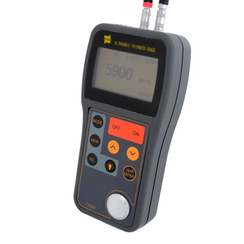 Ультразвуковой толщиномер TT 300 - современный, ручной ультразвуковой толщиномер, характеризуемый быстротой измерений, высокой точностью, возможностью измерений без разрушений, широким диапазоном измерения и удобством в работе, предназначен для измерения толщины изделий из металлов и их сплавов (в том числе цинка, железа, стали, алюминия и т.д.), пластмассы, керамики, стекла и других материалов. Прибор ТТ300 может быть использован в индустриальном производстве, судостроении, машиностроении, авиации и т.д., эффективен для контроля толщины труб и сосудов давления в промышленном оборудовании, подверженном коррозии. Толщиномер TT300 сертифицирован Госстандартом РФ и внесен в Государственный реестр средств измерений.
