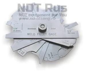 Позволяет проводить измерение одиннадцати размеров угловых швов: 1/8", 3/16", 1/4", 5/16", 3/8", 7/16", 1/2", 5/8", 3/4", 7/8", 1" и их метрических эквивалентов (размер в миллиметрах), выпуклости и вогнутости шва.