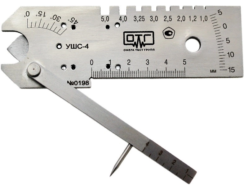 Универсальный шаблон сварщика УШС-4 изготавливается в соответствии с ТУ 427600-088-4407661-2017"Универсальные шаблоны сварщика. Общие технические условия" и предназначен для визуального контроля элементов разделки под сварной шов, электродов, углов скоса кромок, высоты валика усиления и катета углового шва, выпуклости корня шва стыкового (углового, нахлесточного и тд.) сварного соединения, а также величины зазора между свариваемыми деталями.