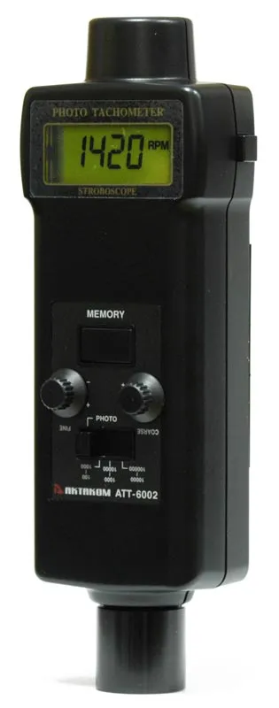 Тахометр/стробоскоп АТТ-6002 совмещает в одном корпусе два прибора: цифровой фототахометр и цифровой стробоскоп. Идеален для определения скоростей вращения недоступных валов и деталей механизмов.