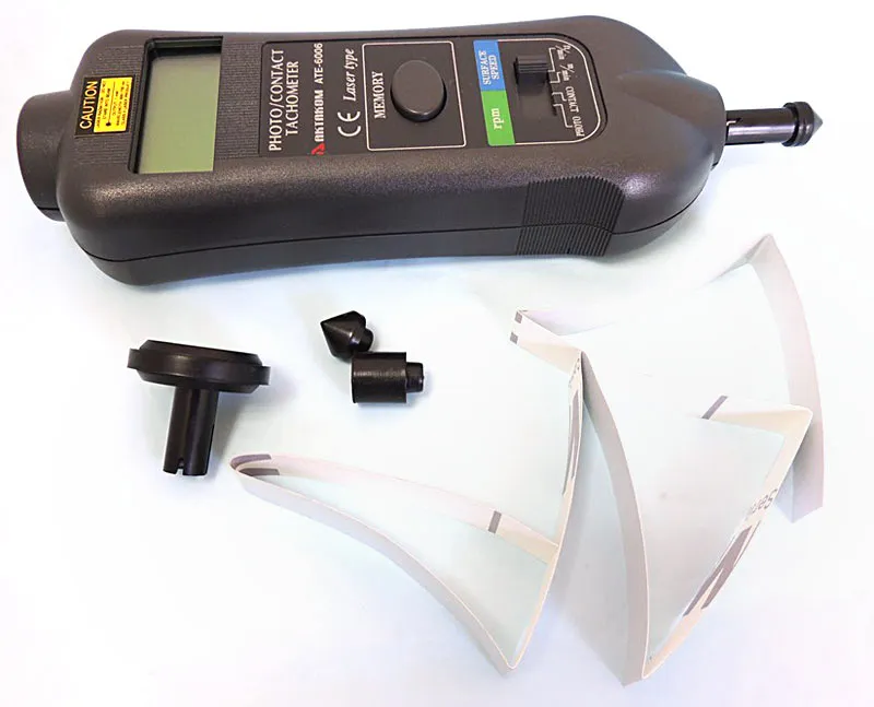 Прибор является удачным сочетанием двух популярных приборов в одном корпусе. Цифровой контактный тахометр с возможностью измерения линейной скорости вращения и фототахометр с удобной системой лазерного прицеливания к метке-отражателю. В приборе имеется режим памяти максимального, минимального и последнего значения.