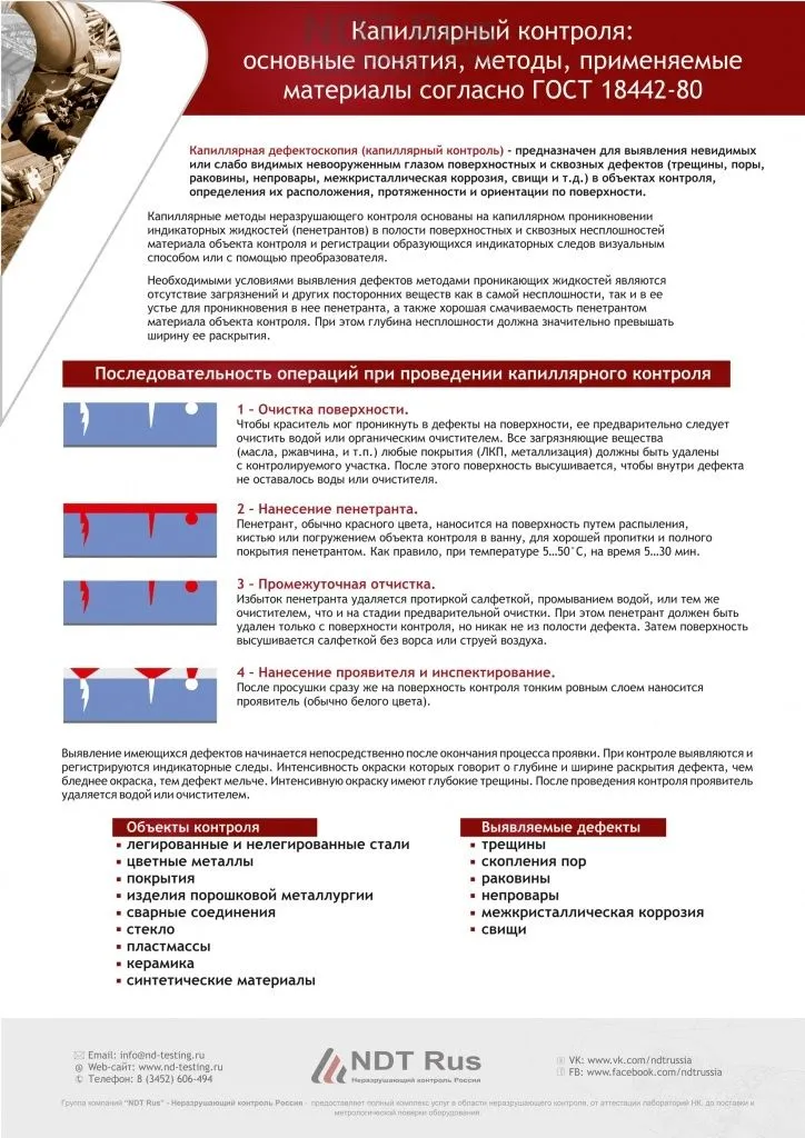 Капиллярный контроль: основные понятия, методы, применяемые материалы согласно ГОСТ 18442-80