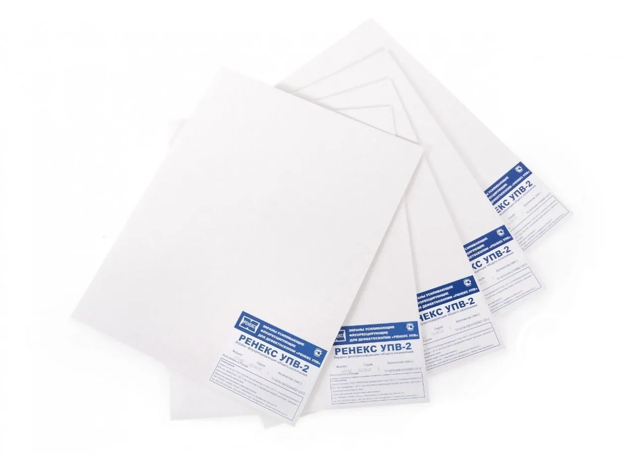 Флуоресцирующие экраны для промышленной дефектоскопии УПВ-2 предназначены для совместного использования с техническими радиографическими плёнками, сенсибилизация эмульсионного слоя которых позволяет применение усиливающих экранов с эмиссией в ультрафиолетовой, фиолетовой и синей области спектра.